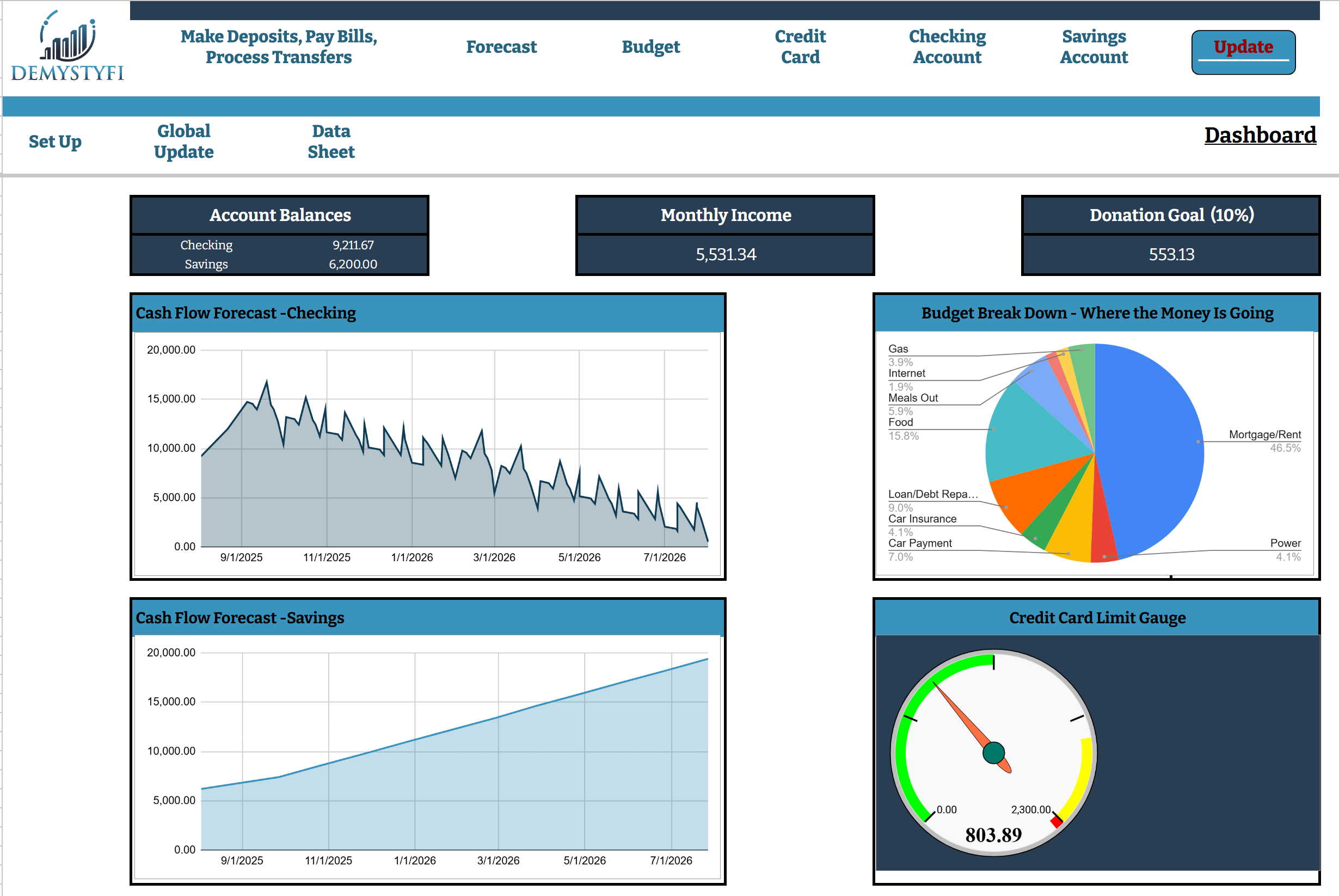 Our "DemystyFI Brains"—the advanced script built into the system—handles the hard work for you. It tracks due dates, manages recurring payments, and keeps your forecast up to date, saving you time and giving you peace of mind.